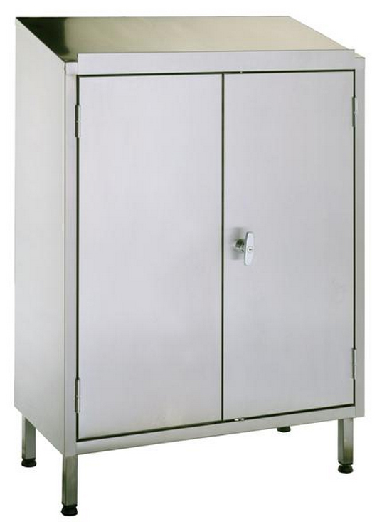 Armoire pupitre de rangement en inox - 2 portes - L 800 x P 400 x 1170 mm