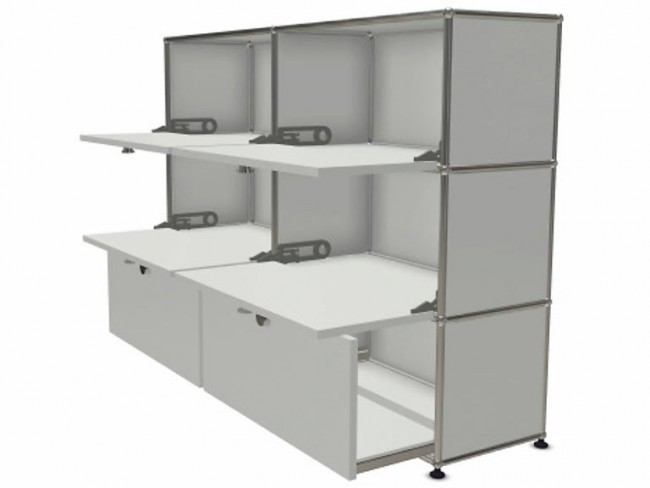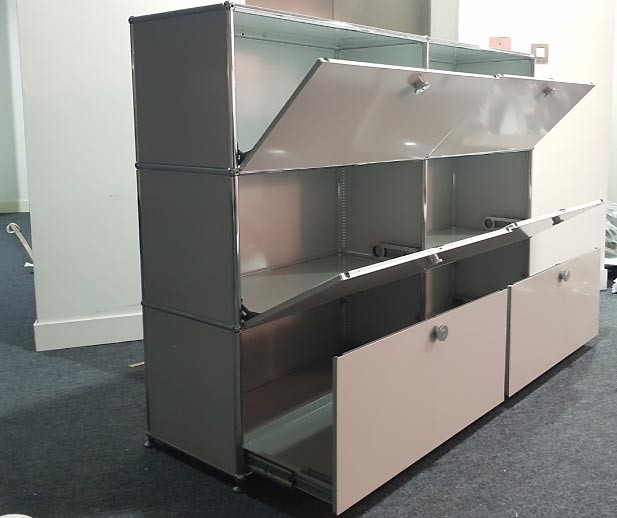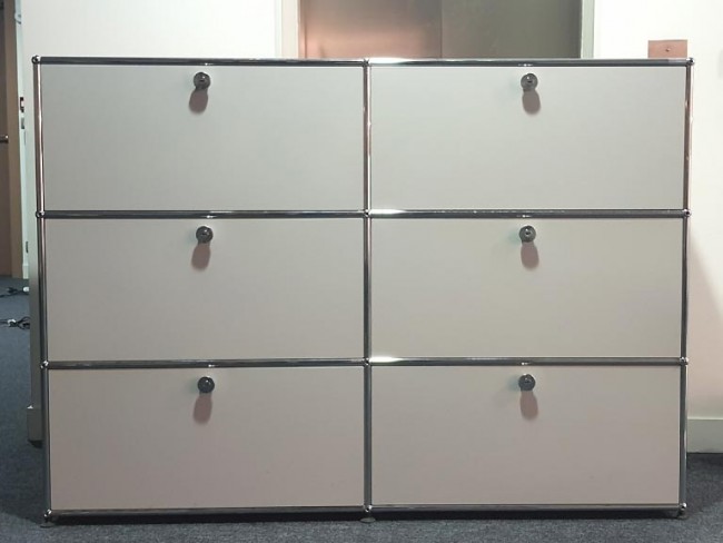 Il s'agit d'un meuble USM composé de 6 cases, de conception métallique, ce rangement de bureau basse Hauteur monobloc est d'une grande robustesse.