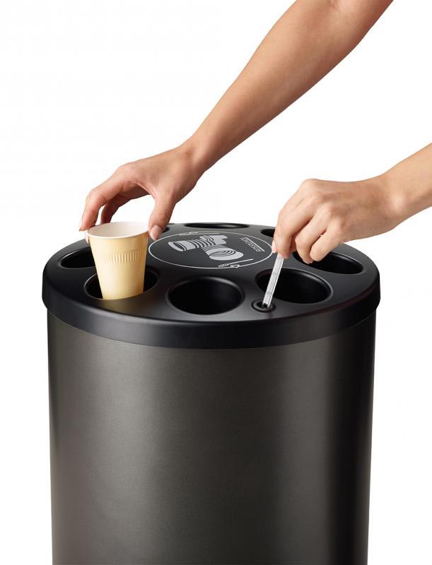 Tri intelligent : réceptacle dédié gobelets (Ø max 70mm) + séparation déchets