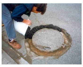 L’enrobé à froid est conçu pour les réparations immédiates, d'urgence : nids de poule, tranchées, entretien des allées et des jardins, petites réparations .
