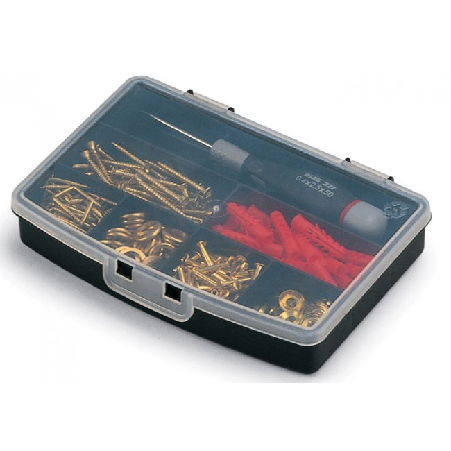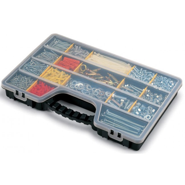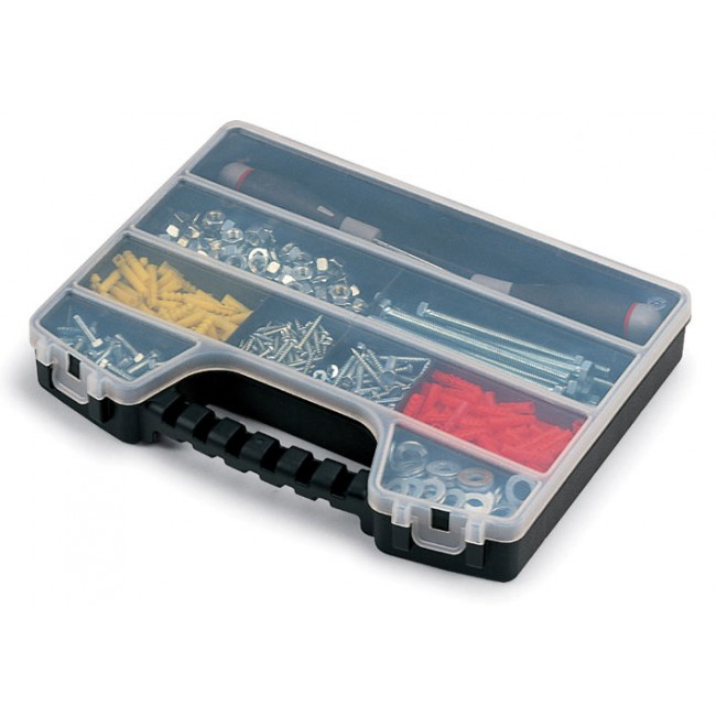 Cette mallette en plastique transparente est conçue pour le rangement de plusieurs outils .