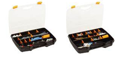 Conçue entièrement en polypropylène, ces malettes d'assortiments sont équipées de poignées semi intégrées à la valisette.