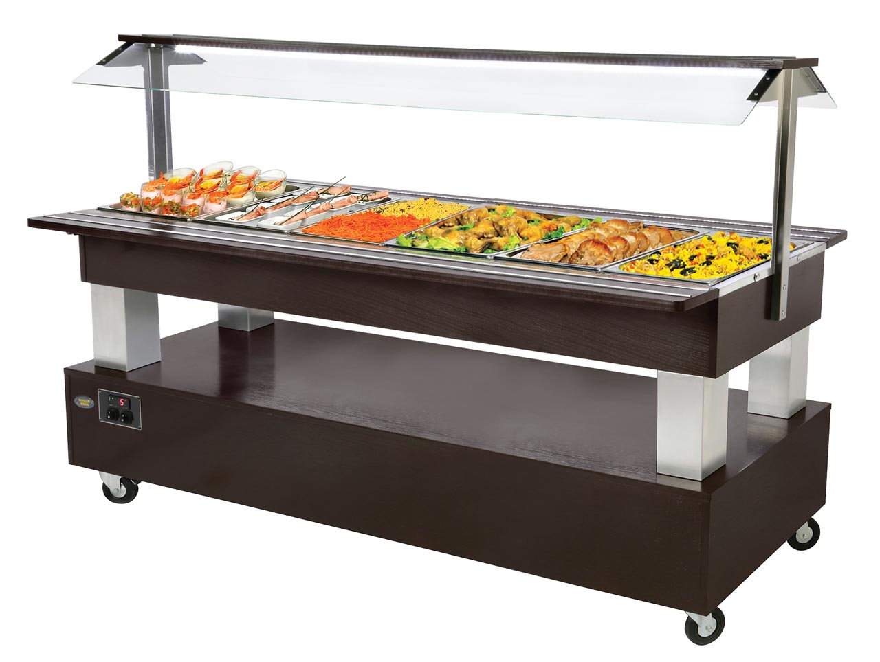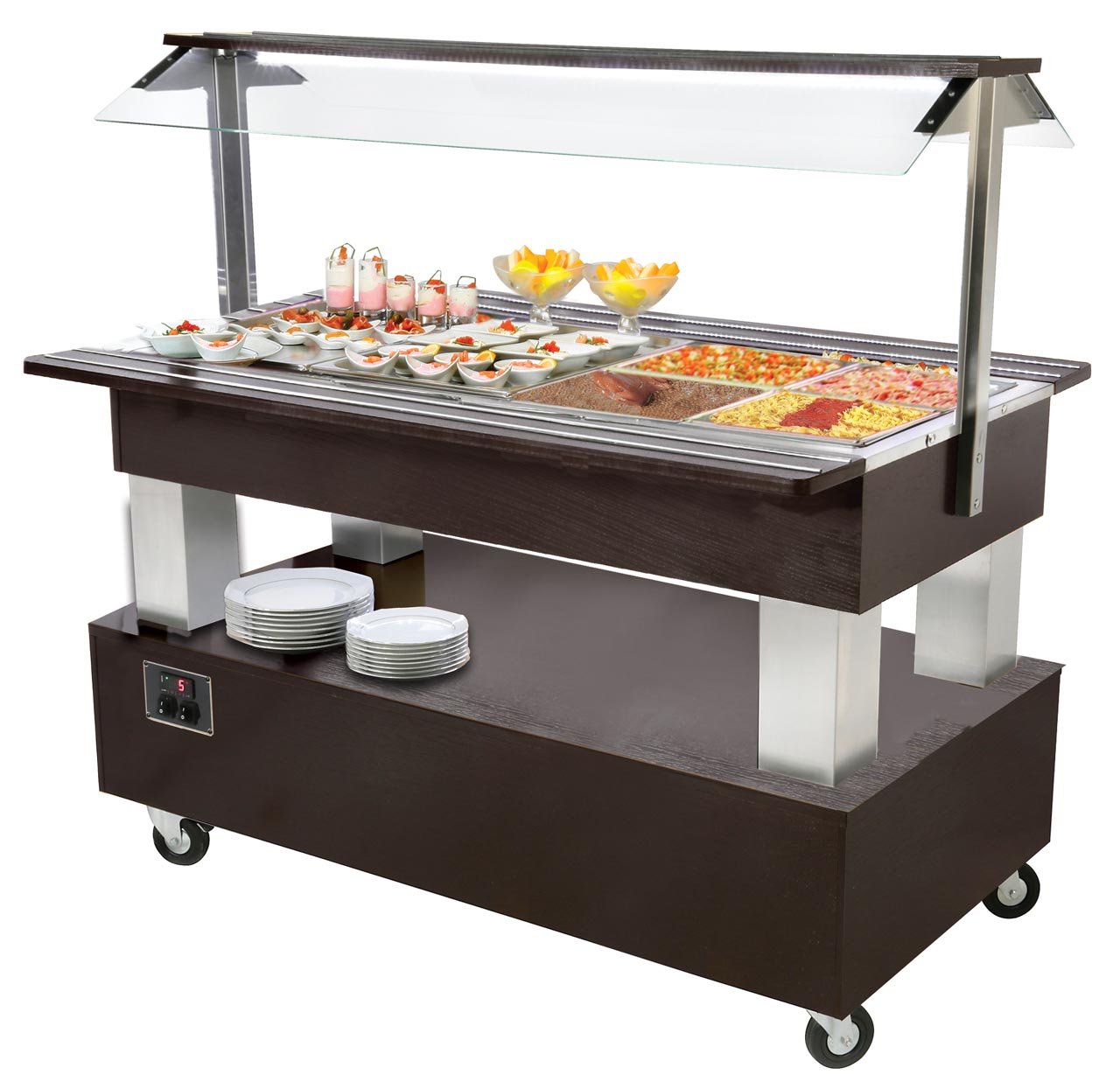 salade'bar permettant de maintenir à température adéquates vos préparations culinaires pour une mise à disposition en libre service dans votre restaurant, cantine ou lors d'un évènement.