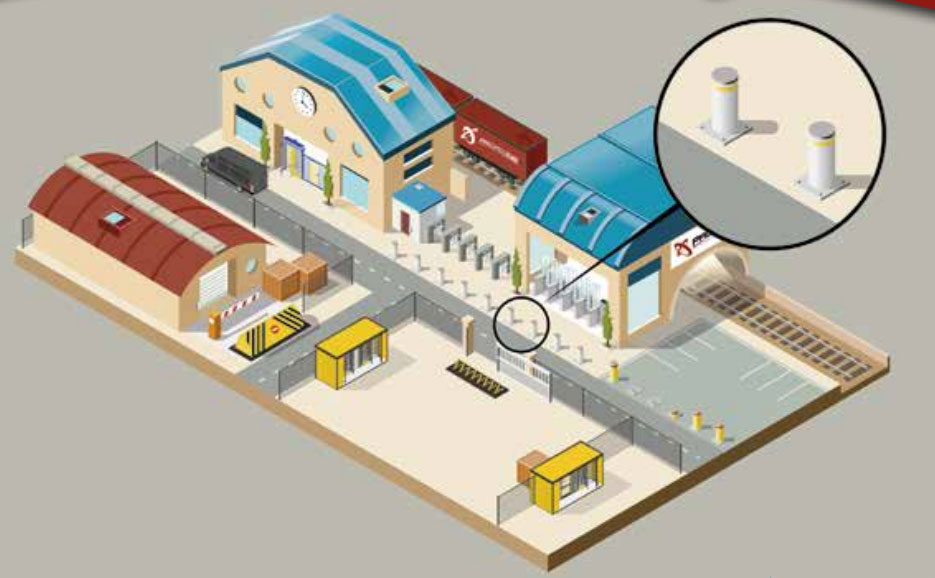 - Les BORNES FIXES peuvent être implantées seules ou couplées avec des obstacles mobiles, tels que l’obstacle routier ou borne escamotable.