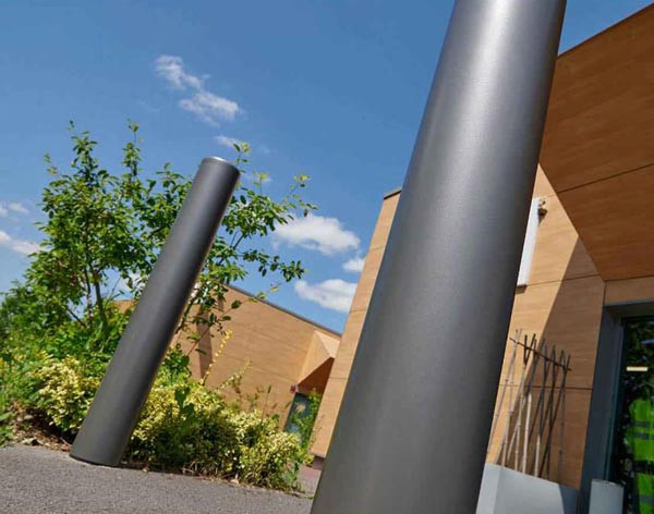 43 poteaux à sceller de diamètre 200mm longueur 1600 laqué ral 8019.
