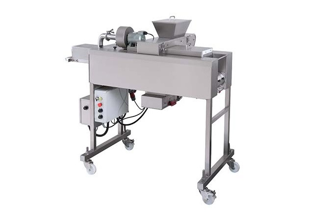La machine est dotée d'une pompe pour le déversement de la farine, ainsi que d'une soufflerie réglable pour éliminer l'excès de farine.