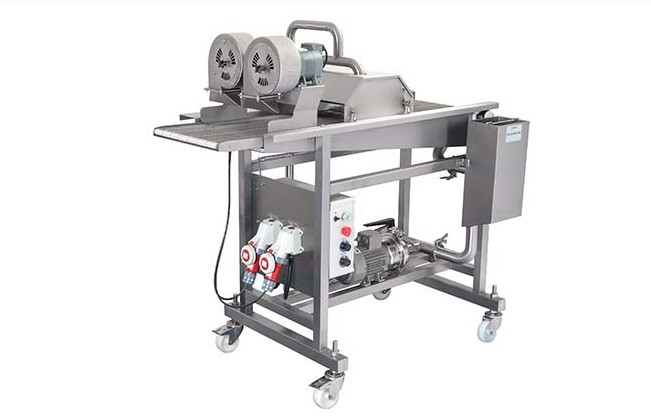 Cette enrobeuse viande automatique est conçue pour simplifier le processus d'enrobage de vos produits de manière efficace et automatisée.