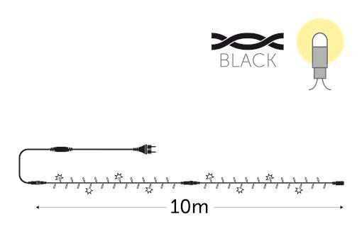 La guirlande mesure 10 mètres et comporte 100 LED blanc chaud, espacées tous les 10 cm.