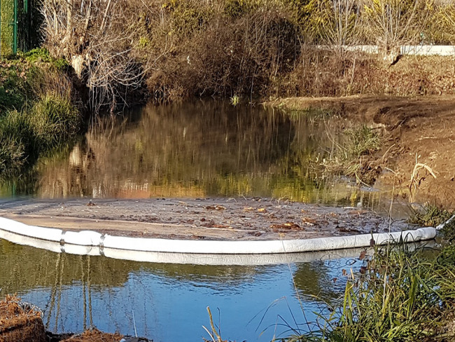 Cebarrage flottant est 100 % écologique est idéale pour le confinement des hydrocarbures et d’autres polluants sur la surface de l’eau.