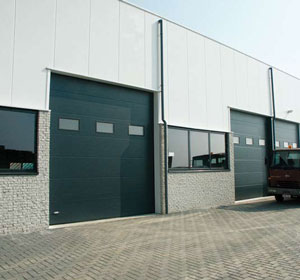 Portail sectionnel industriel h4,5m l 4m couleur RAL 7016 panneaux épaisseurs 40mm électrifiable