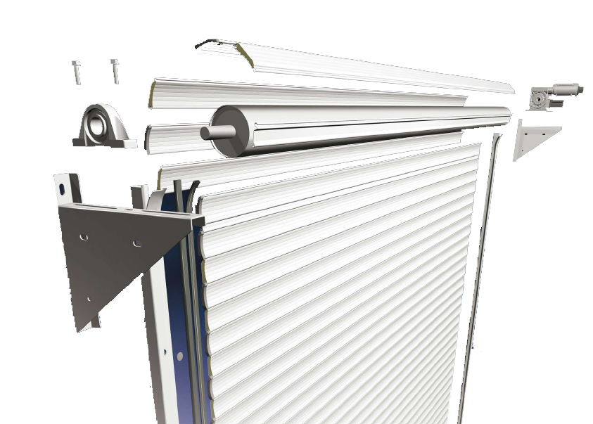 Fourniture d’une porte Portes métalliques à relevage par enroulement, composée de :