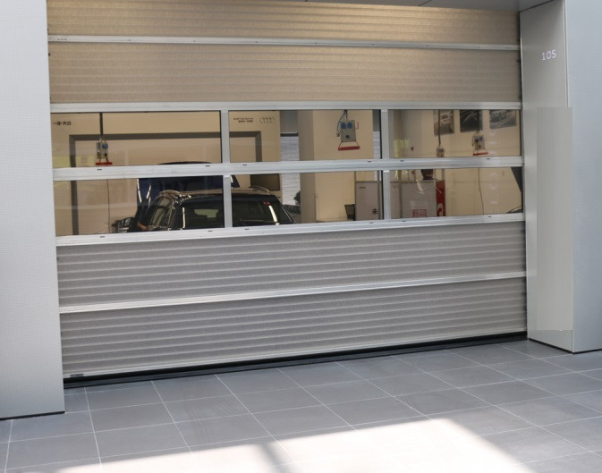 Ces portes sectionnelles à empilement motorisée allient le principe d'ouverture d'une porte à panneaux articulés aux avantages de la fibre de verre.