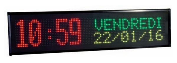 Horloge affichage complet de la date, jour en toutes lettres. En français. Modèle affiché sur votre site. Merci