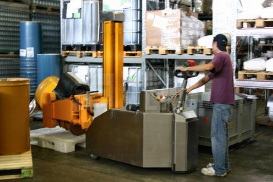 Je suis à la recherche d"un équipement permettant de transférer différents types de fûts (metaliques, plastiques, ...) de 50L à 200L de palettes en palettes sans intervention manuelles des opérateurs logistiques. Je souhaiterai avoir un chiffrage pour ce chariot électrique pour fûts.