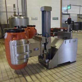 Il est équipé d'un basculeur de fûts latéral agissant sans encombrement des pieds du chariot.