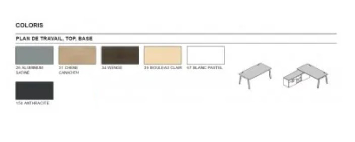 - Coloris plateau: blanc pastel, autres finitions voir nuancier.