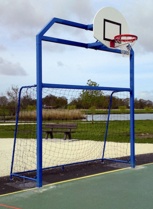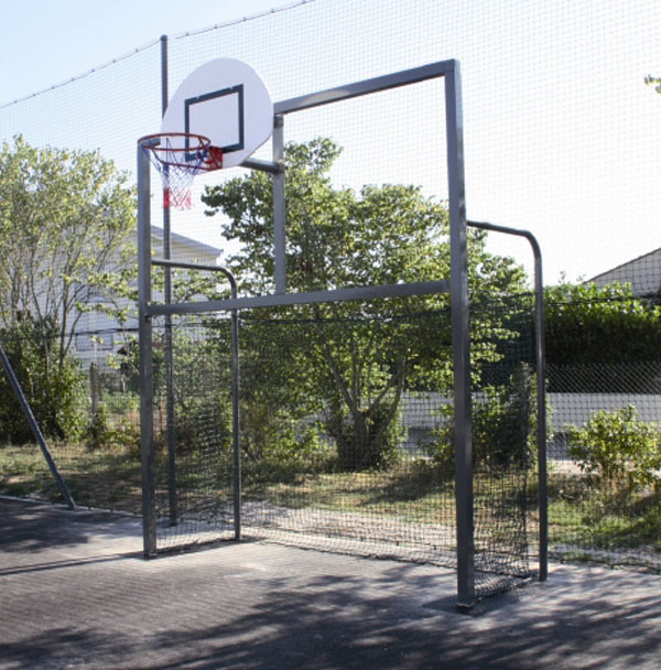 Aire de jeux multifonction . la structure sera de type fronton multisport composé : 1 But de foot de dimensions réglementaires, avce ouvertures latérales permettant l"accès avec fauteuil roulant. 1 Panier de basket avce cercle réglementaire. polyéthylène haute densité de 19mm d"épaisseur, libre d’entretien anti grafitti. atténuation acoustique des coups de ballon.- pièces métalliques en acier galvanisé. Dimensions: Longueur maximum 8m. - Coloris soumis à l"approbation du maître oeuvre. Pour des raisons de sécurité pour les utilisateur, le but Multisport sera intégré au fronton : le fronton sera donc plat. Le but ser constitué d"une cage rectangulaire. Pour plus d"informations, merci de nous contacter