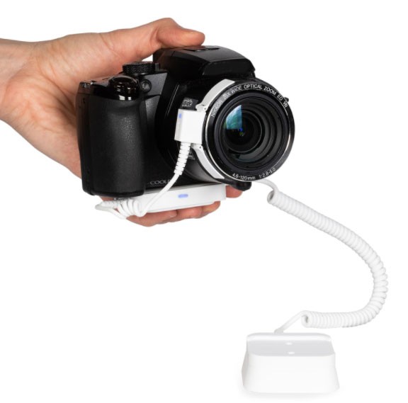 Cet antivol libre toucher pour appareil photo reflex numérique est à la fois un outil de merchandising et de protection anti effraction permettant une expérience client en toute sécurité, chaque visiteur pouvant manipuler les appareils à sa guise.