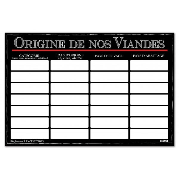 Un affichage qui renseigne les clients sur la catégorie de viande, pays d’origine, pays d’élevage, pays d’abattage.