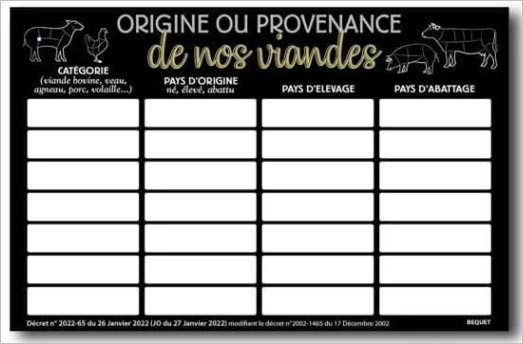 Demande de prix pour Panneau origine viande pour restaurant - 30 x 20 cm