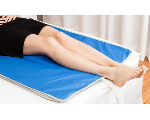 Ce sur-matelas climatisé pour jambes est conçu pour soulager les jambes lourdes, le syndrome des jambes sans repos (SJSR) et les impatiences.
