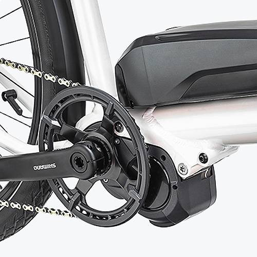Le tandem électrique équipé d'un moteur central Shimano Steps et d'un dérailleur 11 vitesses.