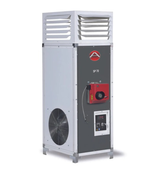 Il est installé de manière permanente, soit à l'intérieur du local, soit à l'extérieur sous abri, et est relié à un réseau de gaine de soufflage.