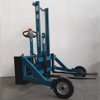 Ce gerbeur tout-terrain électrique est particulièrement adapté pour le chargement, déchargement, et le transport de produits, notamment les palettes, sur terrain irrégulier.