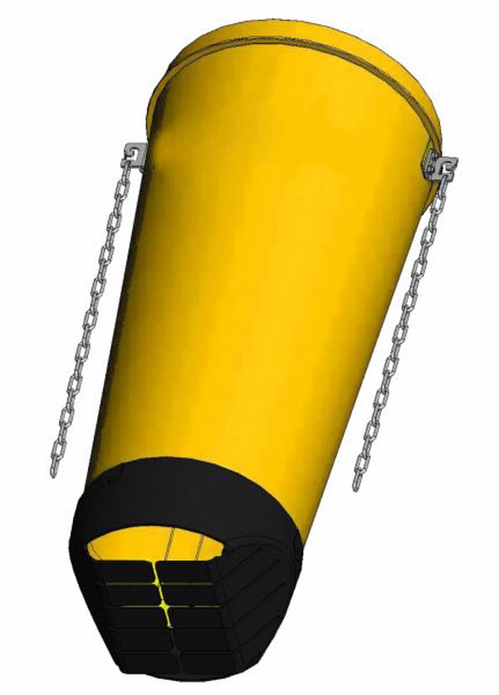 L'accrochage de la goulotte et trémie se fait grâce à système de fixation renforcé avec gâchette de sécurité.