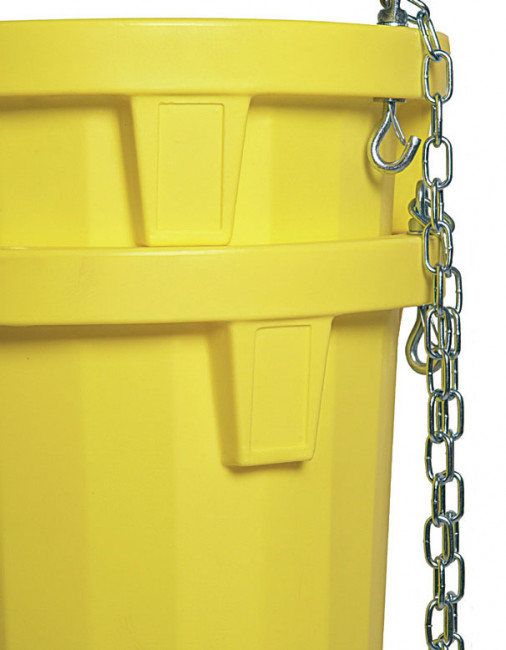 Les chaînes qui fixent la goulotte sont attachées à deux points renforcés par des nervures, ce qui assure la stabilité et la résistance de la colonne pendant le déchargement des déchets.
