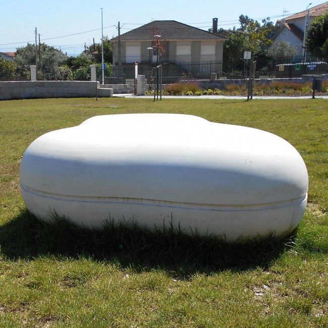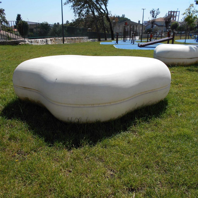 Une assise urbaine en béton aux formes naturelles