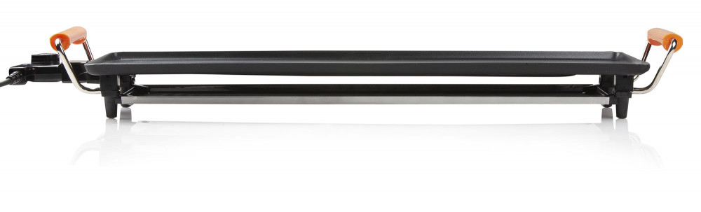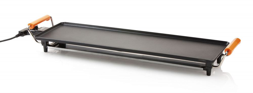 Sa très grande surface de cuisson en aluminium avec revêtement anti-adhérent de haute qualité de 70 x 22 cm permet cuire de la viande, du poisson, des légumes.