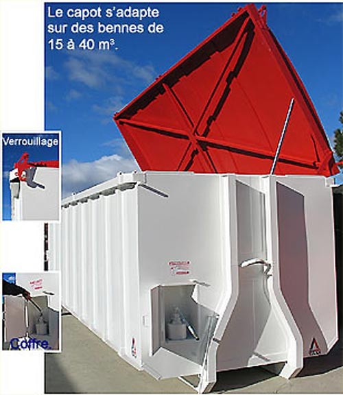 Grâce à son capot rigide, cette benne permet de supprimer les risques d’accident du personnel lors de la mise en place de filet ou de bâche.