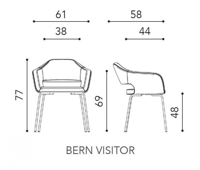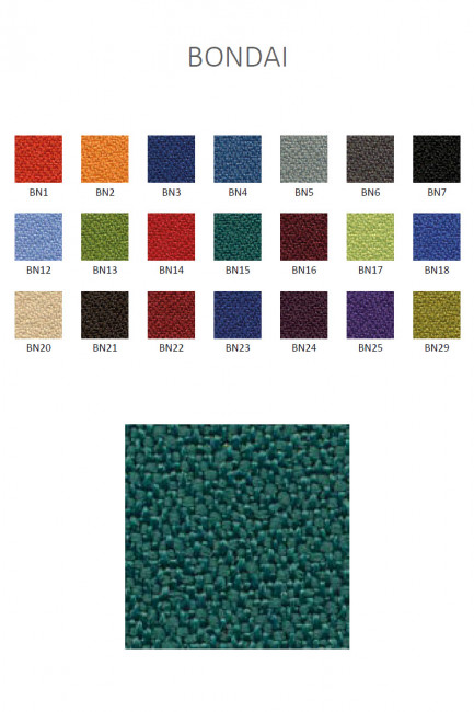 Le Fauteuil Bern visitor est composé d'une assise rembourrée en mousse polyuréthane à froid et recouvert de tissu. Un grand choix de tissu est disponible : Bondai (tissu Non feu M1), Bloom (tissu enduit), Xtrem (tissu non feu M1), Laine et cuir. La structure est en acier et le piétement circulaire est en aluminium moulé sous pression.