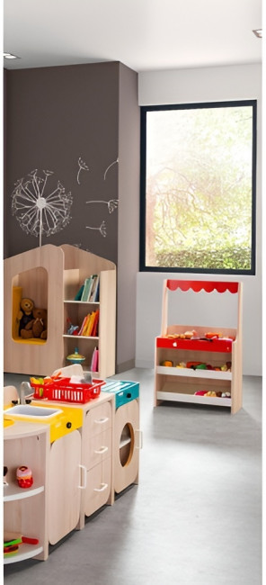 La polyvalence de ce mobilier d’imitation pour crèche favorise :