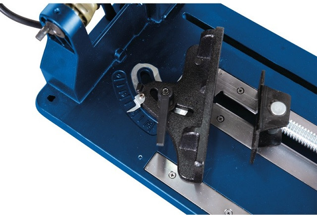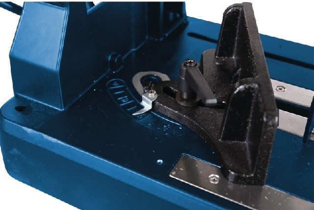Grâce à son étau à serrage rapide et à son mors prismatique fourni de série, la tronçonneuse permet de positionner la matière à un angle de 45 degrés, ce qui prolonge la durée de vie de la lame jusqu'à cinq fois plus longtemps.
