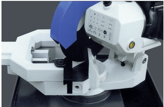 - Etau pivotant à ± 45° sur la gauche et la droite avec dispositif anti-bavures pour une coupe nette et précise