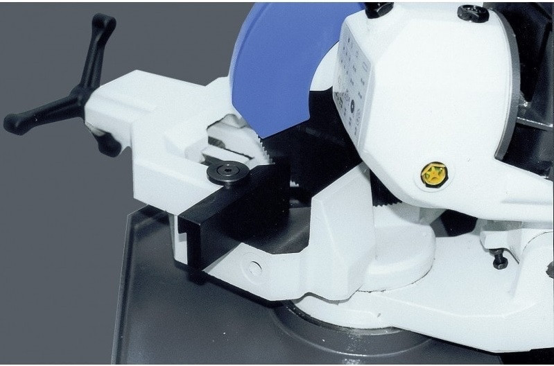 L'étau pivotant, également réglable de ± 45°, est doté d'un dispositif anti-bavures pour des coupes nettes et impeccables à chaque fois.