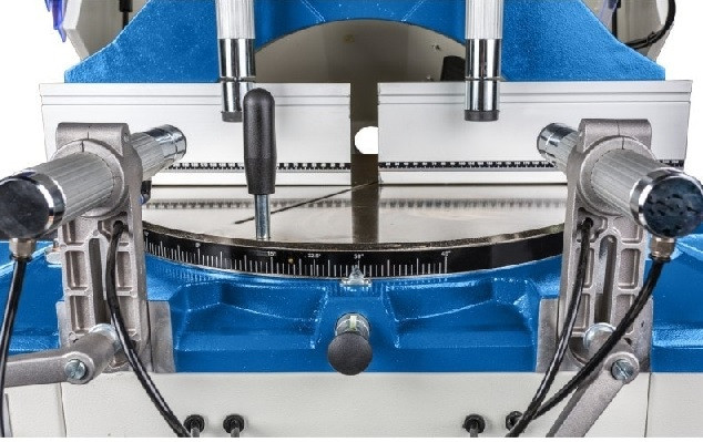 - Blocage de la matière par vérin pneumatique piloté par un bouton sur le panneau de commande