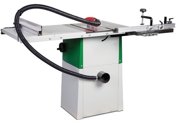 La buse centralisée assure une évacuation immédiate de la sciure avec un diamètre de 100 mm, tandis que le carter de protection de la lame, avec sa tubulure d'aspiration de 30 mm, garantit un environnement de travail propre et sécurisé.
