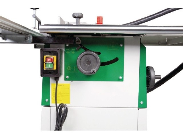 La montée et la descente de la lame se font aisément grâce au volant en façade, offrant un contrôle total sur le processus de découpe.