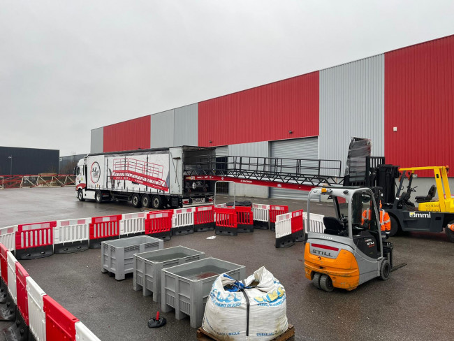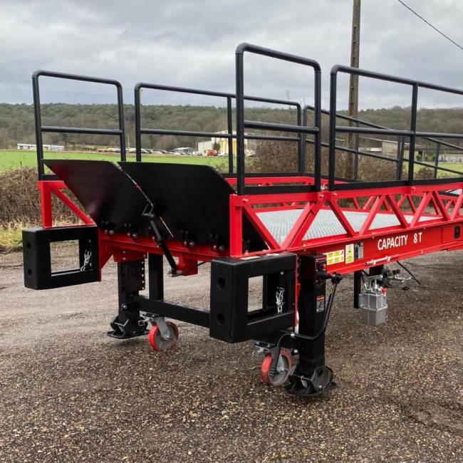 - Plateau d'entrée relevable hydrauliquement pour gain de place en phase de stockage