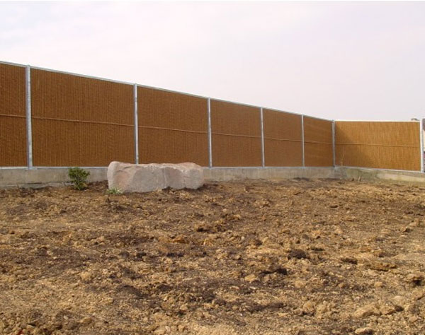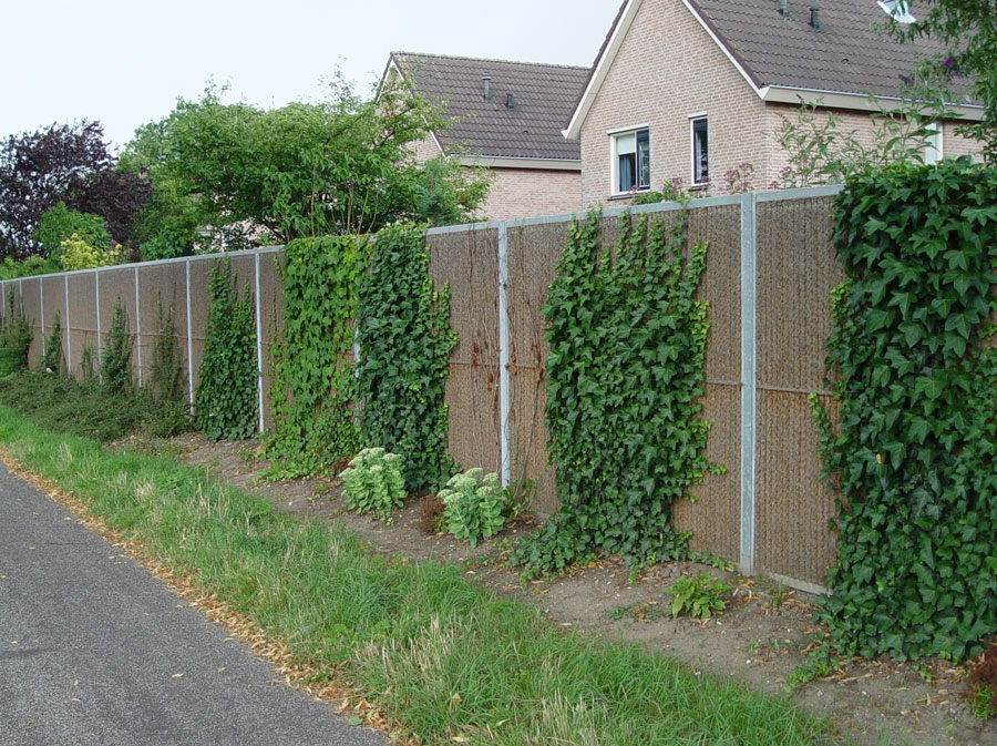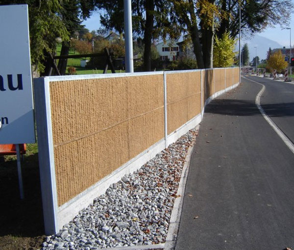 panneaux anti-bruit préfabriqués sont placés et fixés entre des montants en acier galvanisé et la végétation peut être plantée des deux côtés des panneaux dès la pose terminée.