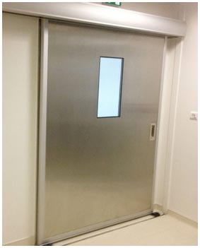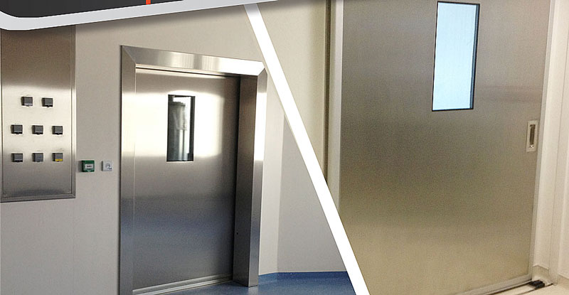 Je cherche une porte coulissante pour une cuisine professionnelle, en inox ou autre matériau pour local avec lavage au jet, CF1/2h, à ouverture à détection