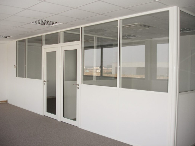- Cloison semi vitré blanc de L 6.8 m x H 2.65 m comprenant 2 porte de 93cm de large