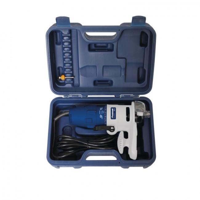 L'affleureuse est livrée dans un coffret de transport pratique qui facilite son transport et son rangement.