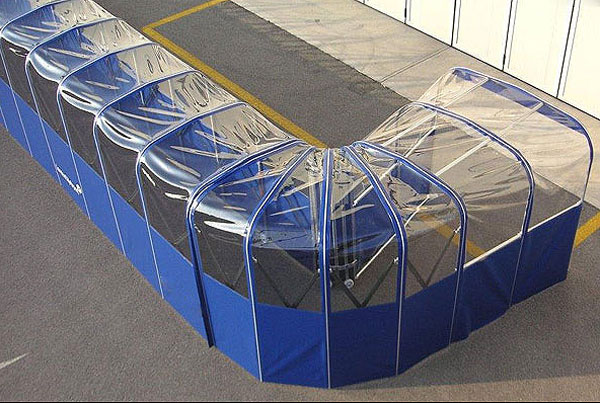 tunnel rétractable toit en toile polyester enduit pvc vernis 2 faces teinte au choix de l archi