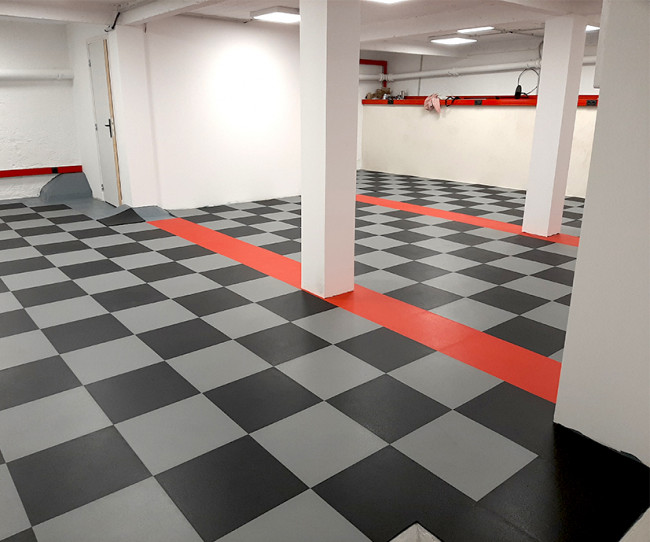 Dalles de sol particulièrement appréciées grâce aux joints cachés sous la dalle. Finition parfaite pour un amenagement de garage réussi.