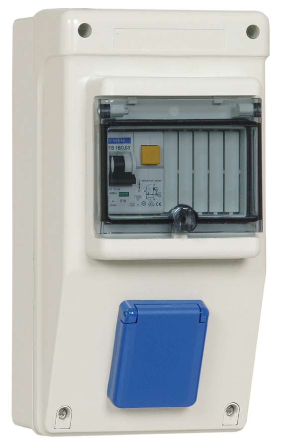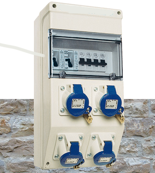 - 1 coffret mural en polycarbonate équipé d'un socle de tableau 2P+T 10/16A NF protégé par un disjoncteur différentiel.