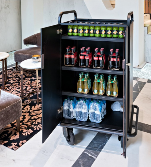 Chariot de service pour approvisionnement frigo utilisé pour faciliter le transport et le stockage des produits alimentaires dans un environnement de restauration ou commercial.